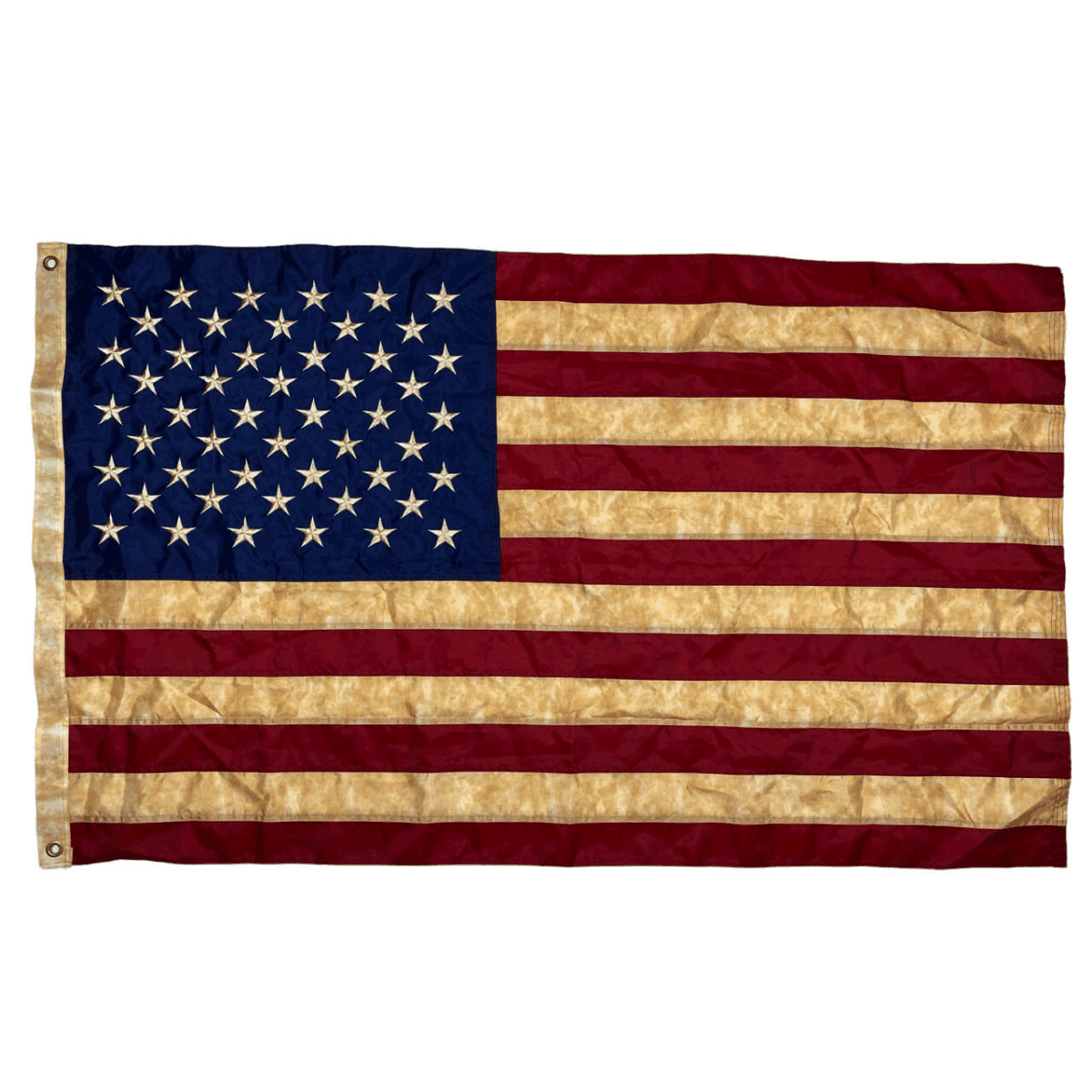 - This flag has a vintage look to it by a process called “tea staining”.