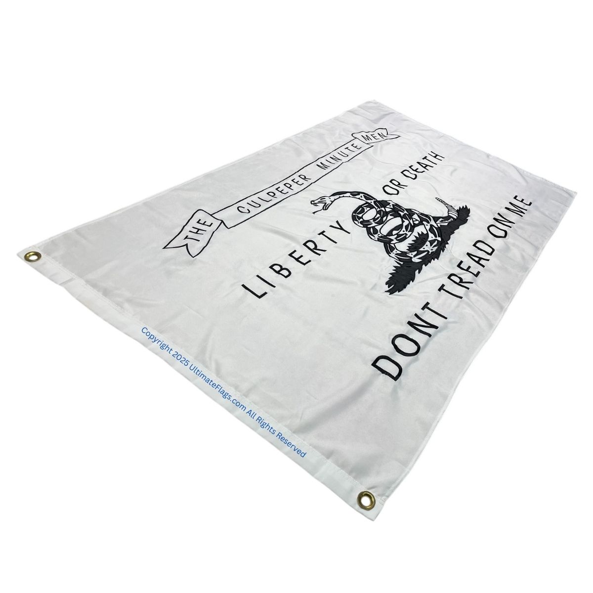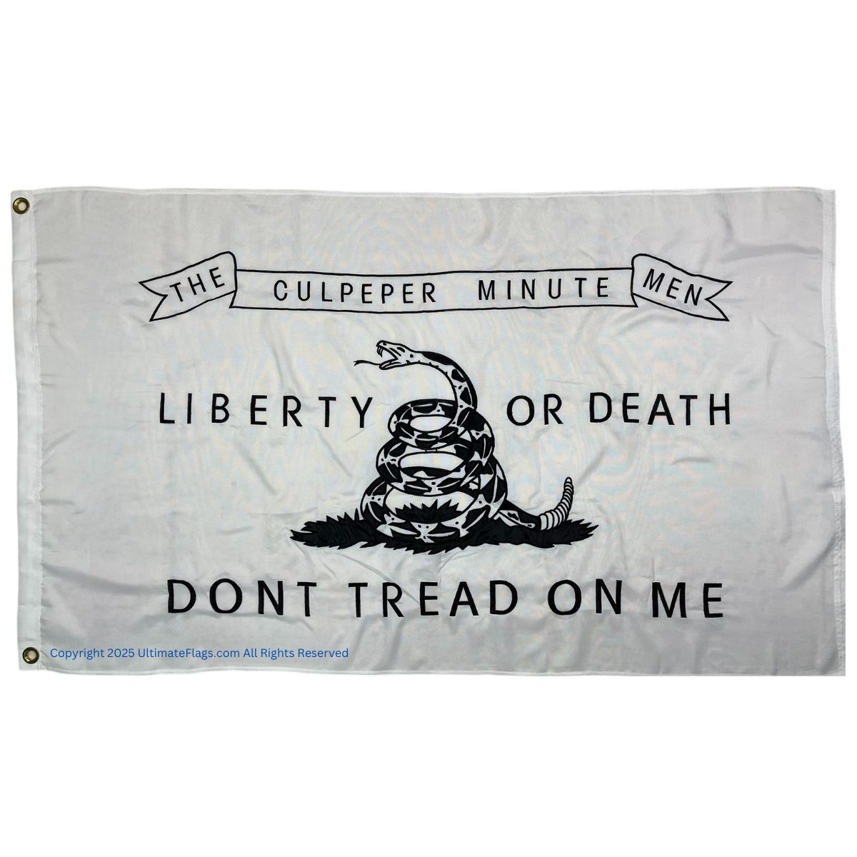 Culpeper MinuteMen Flag – Liberty or Death Flags – White Dont Tread on Me Flag