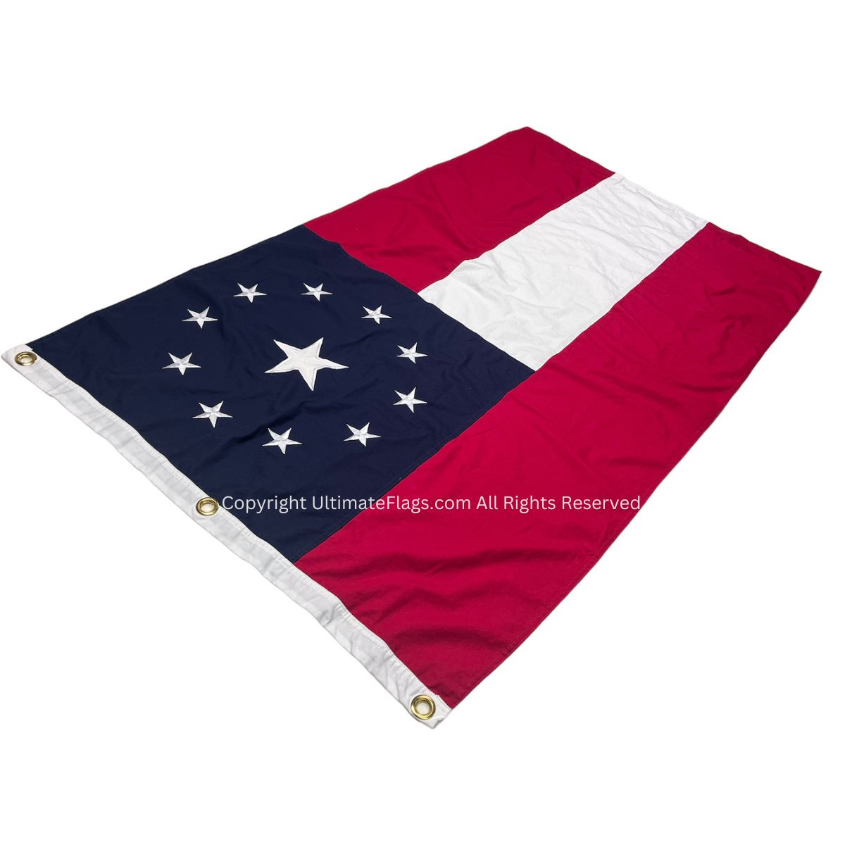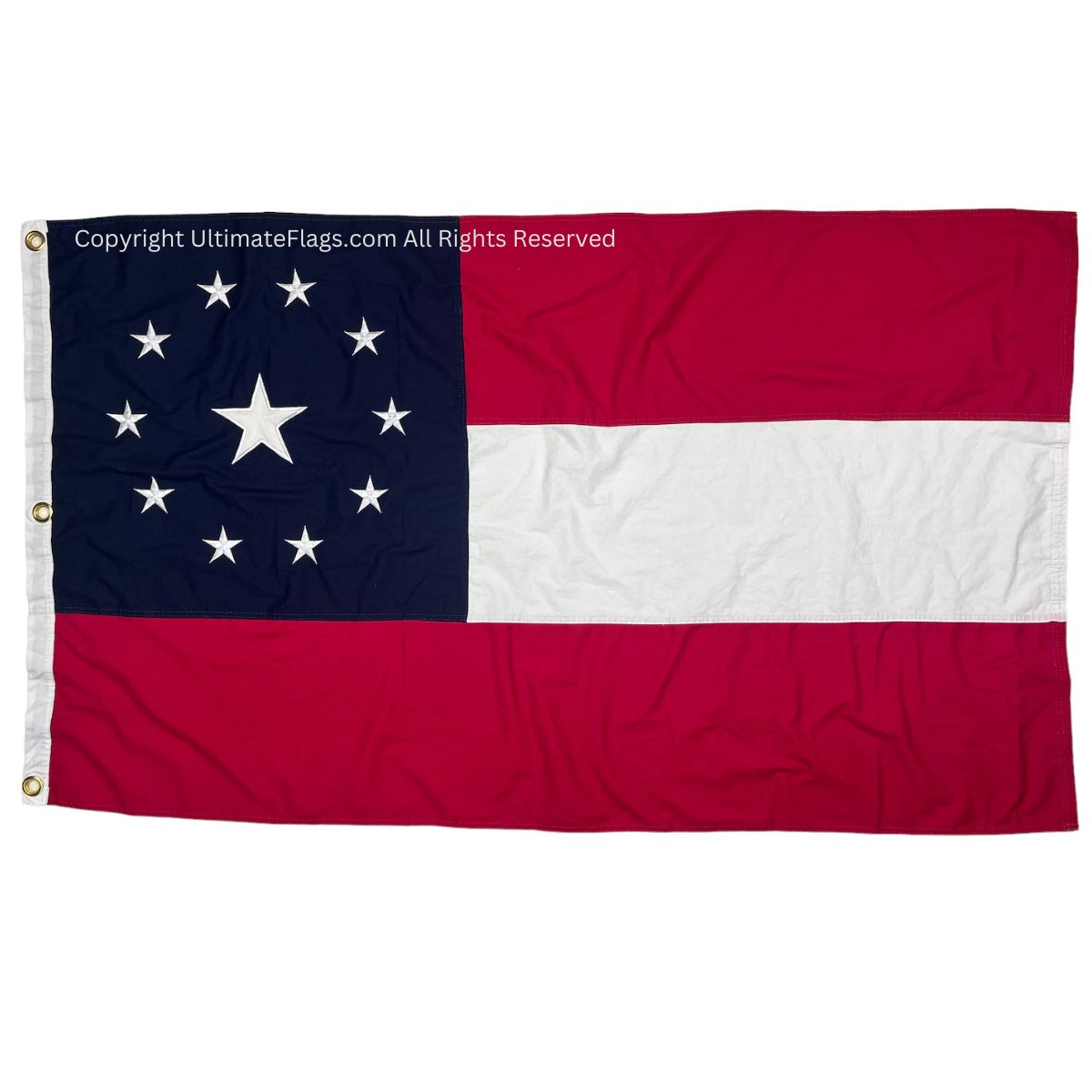 The first national flag of the Confederate States of America with 11 stars, one in the middle.