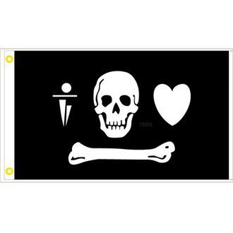 Pirate Flag – This is the flag of pirate Stede Bonnet. It has a skull, dagger, and heart above a bone and is the traditional black pirate flag meaning no quarter given.